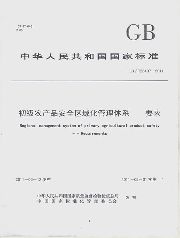 公司參與制定《初級農(nóng)產(chǎn)品質(zhì)量安全區(qū)域化管理要求》(GB/T26407-2011)國家標準。